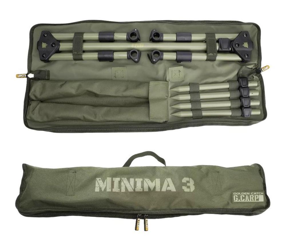 Род-под GC G.Carp Minima 3 — компактная и аккуратная подставка для карповой ловли, рассчитанная на установку трёх удилищ. Модель создана с упором на мобильность, практичность: неброский цвет хаки хорошо маскируется на берегу, не выделяется в фоне природного ландшафта, что особенно ценят любители аккуратной ловли.