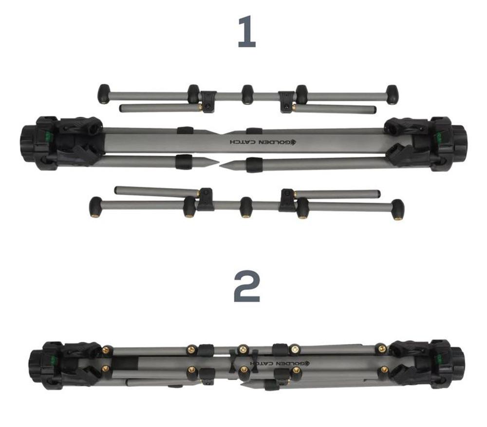 Род-под GC Compact — мобильная карповая платформа, созданная для рыболовов, которые часто меняют точки ловли, ценят порядок в снастях. Основной акцент сделан на компактность, скорость работы: при транспортном положении род-под занимает минимум места, хранится в прочном защитном тубусе, который надёжно защищает конструкцию от ударов загрязнений.